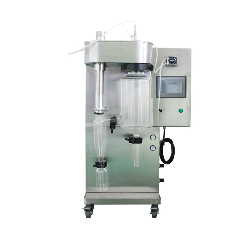 小型 實驗型 微型噴霧干燥機(噴霧干燥儀/噴霧干燥機)及其主要適用于高校、研究所和食品醫藥化工企業實驗室生產微量顆粒粉末,對所有溶液如乳濁液、懸浮液具有廣譜適用性, 適用于對熱敏感性物的干燥如生物制品、生物農藥、酶制劑等,因所噴出的物料只是在噴成霧狀大小顆粒時才受到高溫,故只是瞬間受熱,能保持這些活性材料在干燥后仍維持其活性成份不受破壞。