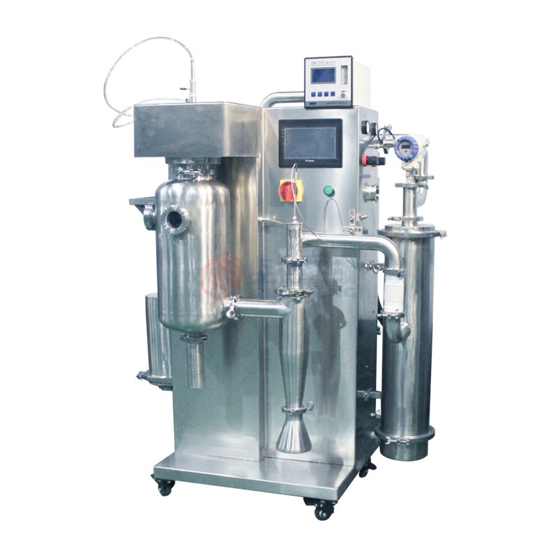 設(shè)備主要由:送料系統(tǒng)、加熱系統(tǒng)、霧化系統(tǒng)、噴霧干燥系統(tǒng)、惰性氣體循環(huán)系統(tǒng)、產(chǎn)品回收系統(tǒng)、冷凝系統(tǒng)組成。