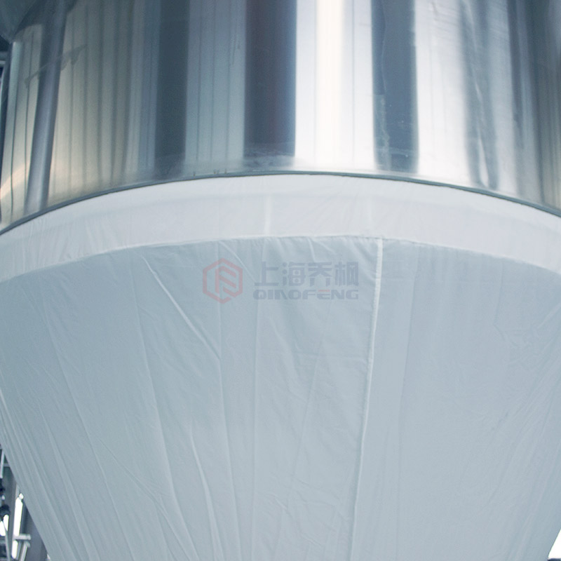 普通的噴霧干燥機的干燥室是用不銹鋼制成的,收粉另需旋風分離器等設備,而袋式噴霧干燥機的干燥室是一個拆裝方便的大布袋,因此粉體產品不分粗細皆于袋底一處回收,特別適用于精密陶瓷等產品粒徑不需分級的造粒和干燥。